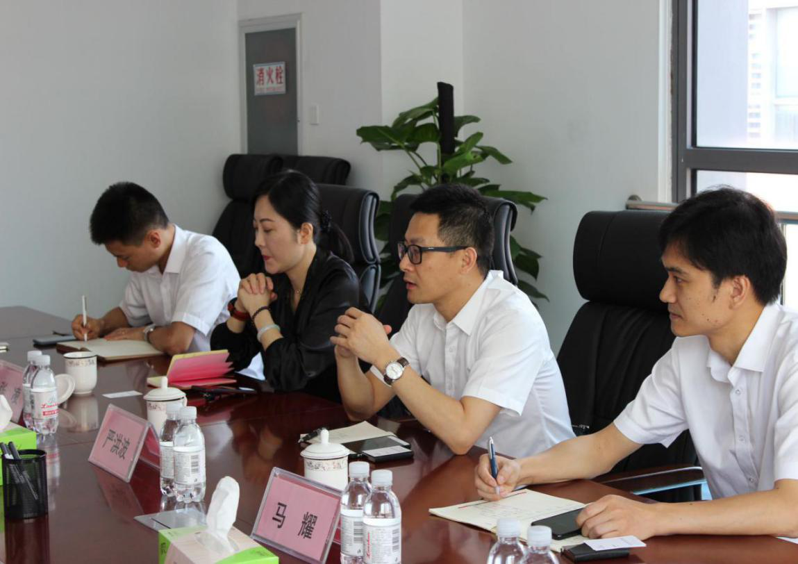 陪同人员首先向严总一行介绍了一楼交易大厅的具体情况和后期业务开展计划。随后双方前往会议室进行座谈交流。